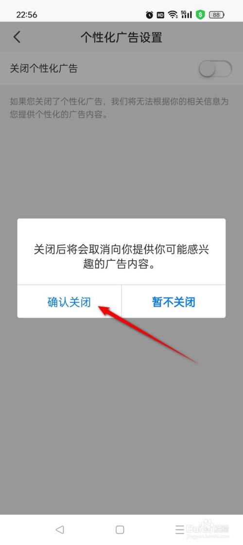 将"封闭个性化告白"旁的小滑块点暗即暗示此时已启用个性化告白功效,此时点击小滑块。