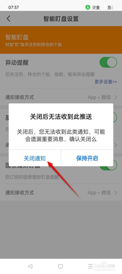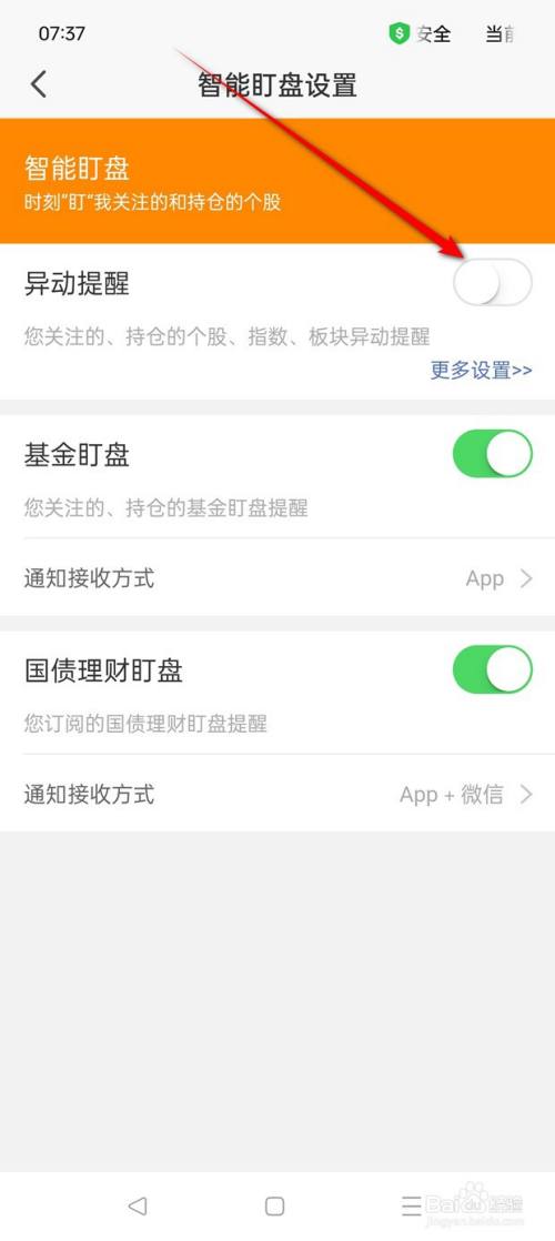 将"异动提示"旁的小滑块点暗即可封闭。
