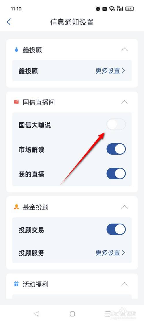 将"国信大咖说"旁的小滑块点暗即可封闭。