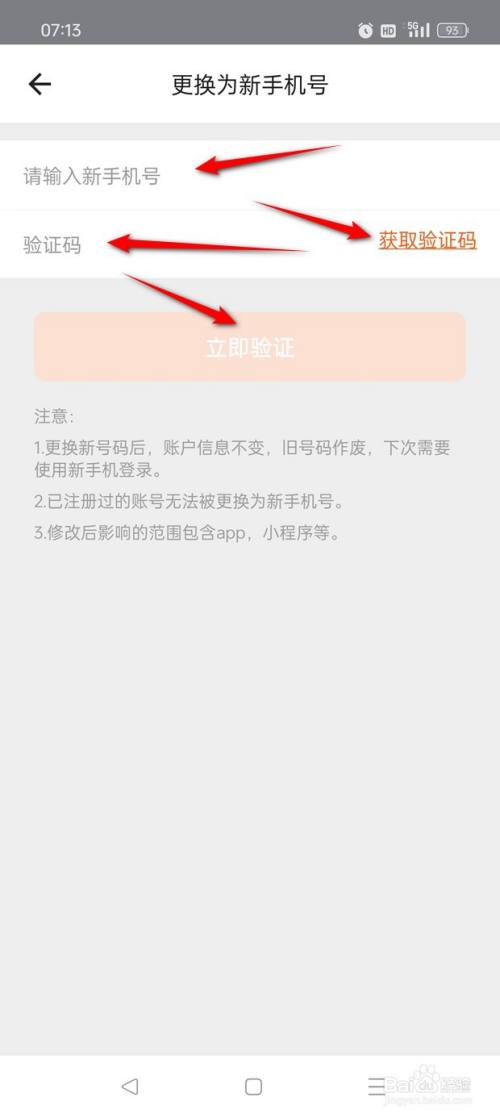 输入新的手机号,点击"获取验证码"并填入,点击"当即验证"即可乐成换绑手机号了。