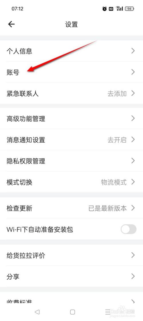 打开货拉拉"我的"页面,点击右上角的小齿轮图标进入。