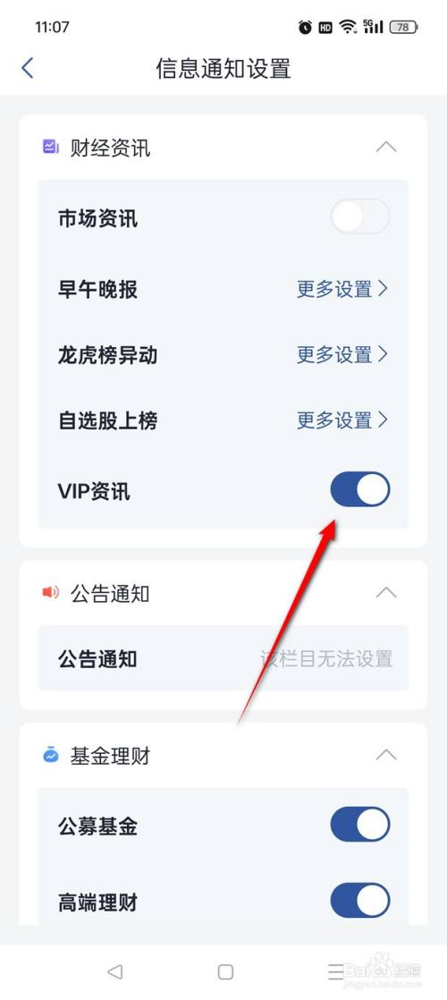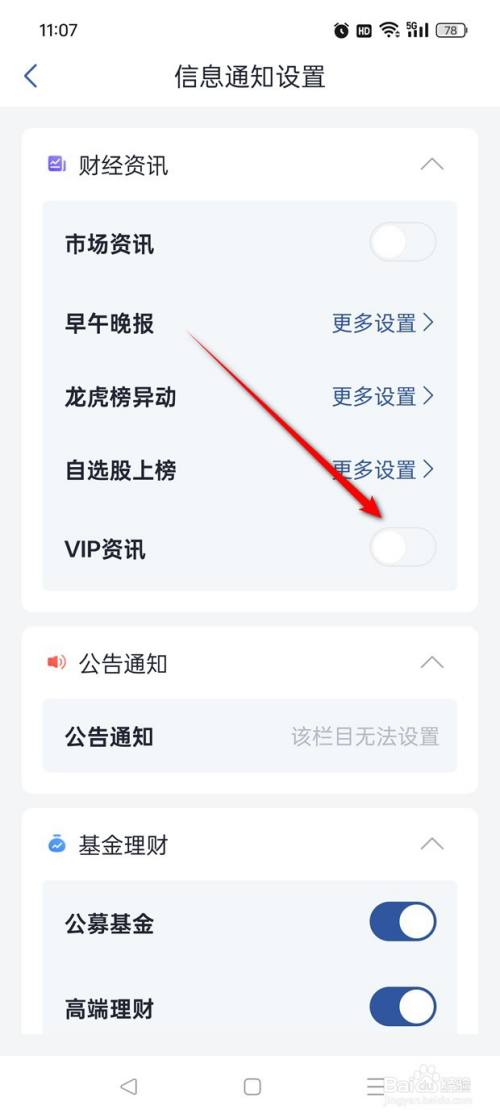 将"VIP资讯"旁的小滑块点亮即可开启,此时点击小滑块。