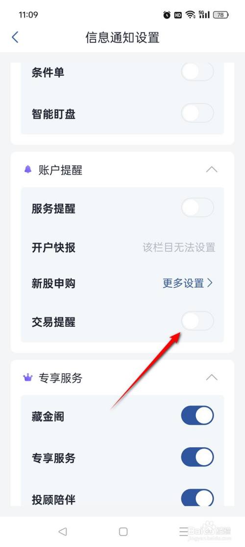 将"生意业务提示"旁的小滑块点亮即可开启,点击小滑块。