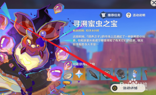 工具/原料黑鲨6JOYUI13原神5.1方法/步骤1点击上方的运动图标2点击左侧的段脾特巡溯蜜虫之泛驼宝选项3点击右下方的运动蚂三详情选项4点击右下方的前去捕获选项5去到捕获所在后,点击右侧的开启巡溯蜜虫之宝6点击右下方的起头捕获选项即可END