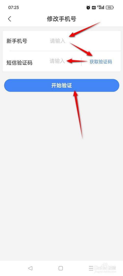 输入新的手机号,再点击获取并填入验证码,点击"起头验证"经由过程即可完当作手机号的换绑操作了。
