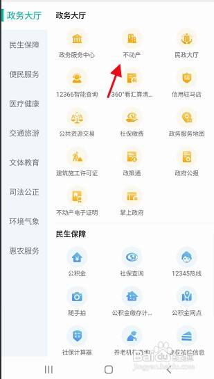 进入政务大厅,找到不动产点击进入