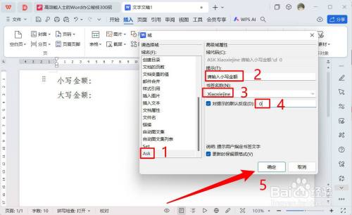 进入界面,选择ASK域,输入提醒、书署名称和默认值,点击确定