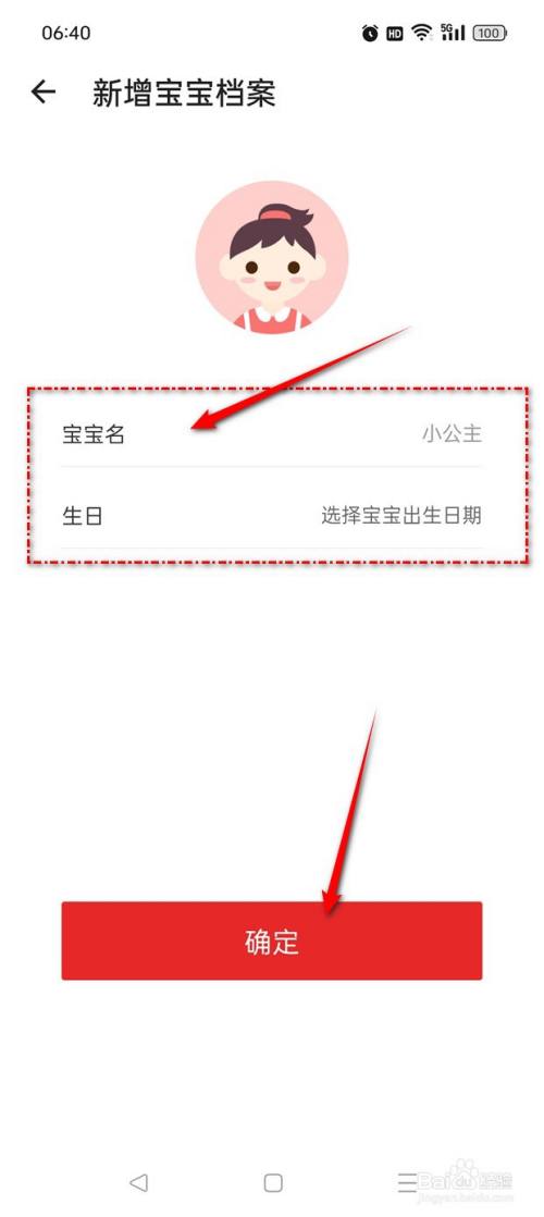 完美宝宝名及生日,点击"确定"即可乐成添加一个宝宝档案了。