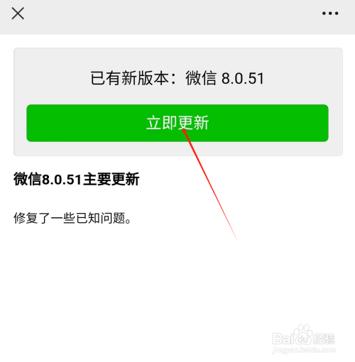 在关于微信界面,可以看到当前微信的版本信息。要是有新版本可用,凡是会在版本更新哪里显示一个小红点提醒,点击【版本更新】进入。