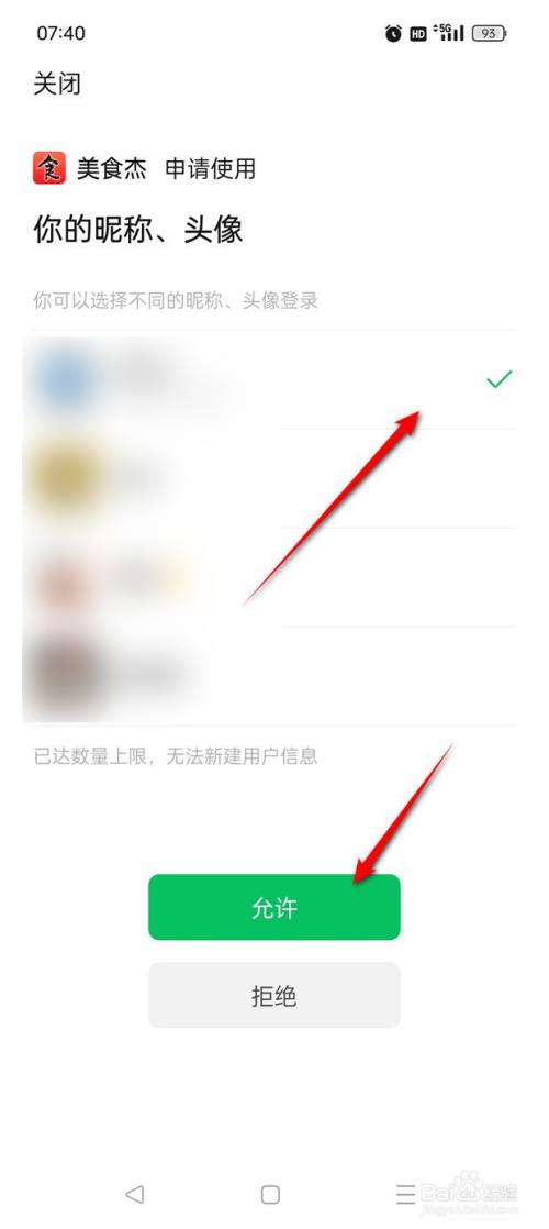 勾选微信账号,点击"许可"。