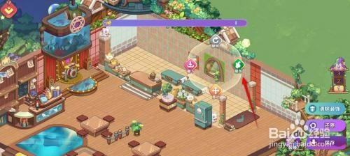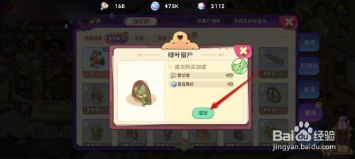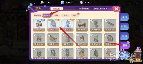 点选"装饰",点击选中"墙壁装饰"页面,点击"绿叶窗户"图标。