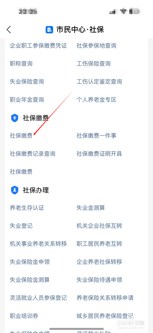 进入社保界面,选择社保缴用度。