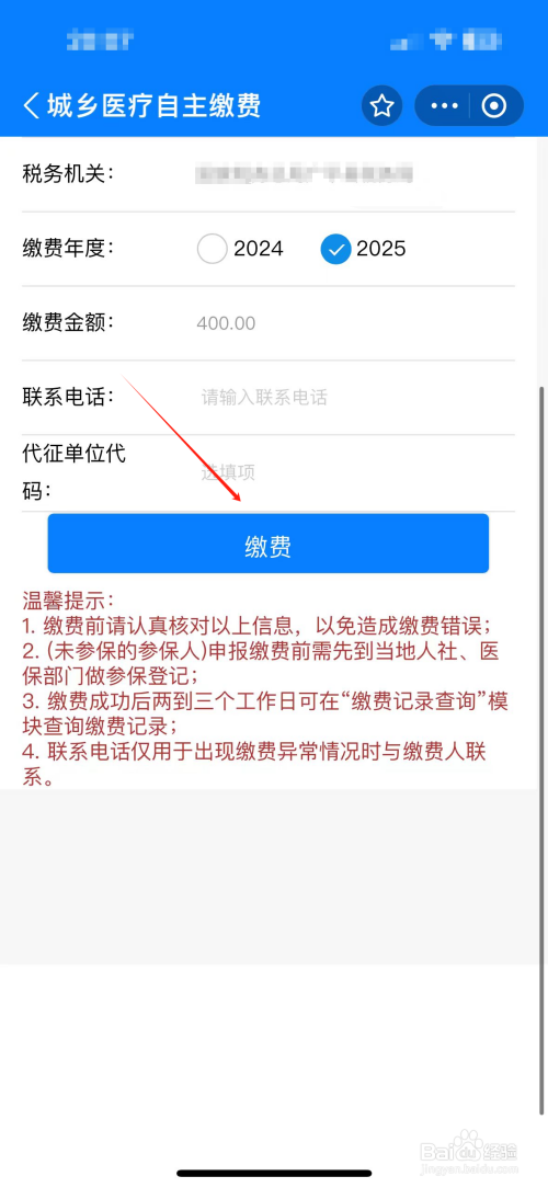 进入查询界面,选择缴用度填写好个人信息,即可在支付宝上缴2025年屯子互助医疗保险。