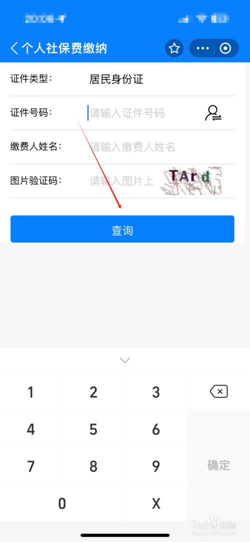 进入个人缴用度界面,输入个人信息后,再点击查询。