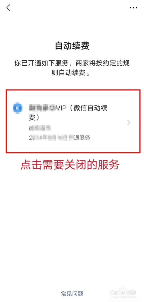 在主动续用度办事列表页面,浏览并选择需要封闭主动续用度的项目,点击进入该项目的办理页面。