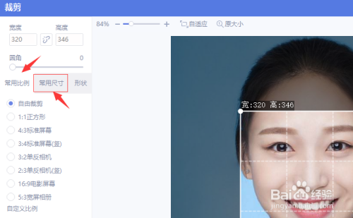 3、在默认环境下,左侧尺寸栏显示的为"常用比例",这里我们切换至"常用尺寸"。