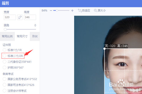 在"证件照"的列表项中勾选"尺度2寸"前的复选框,举行尺寸选定。