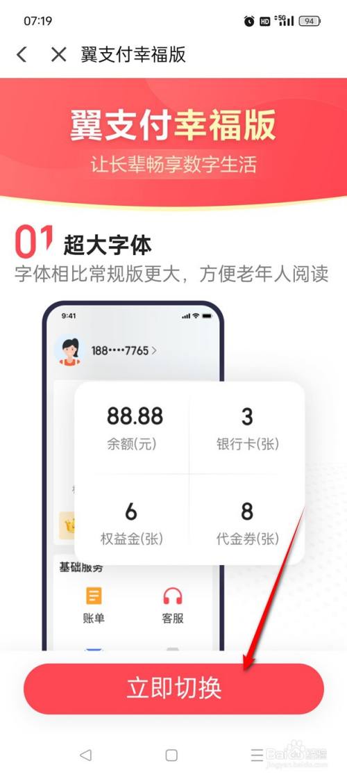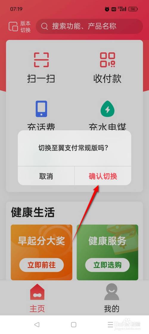 打开翼支付"我的"页面,点击右上角的小齿轮图标进入。