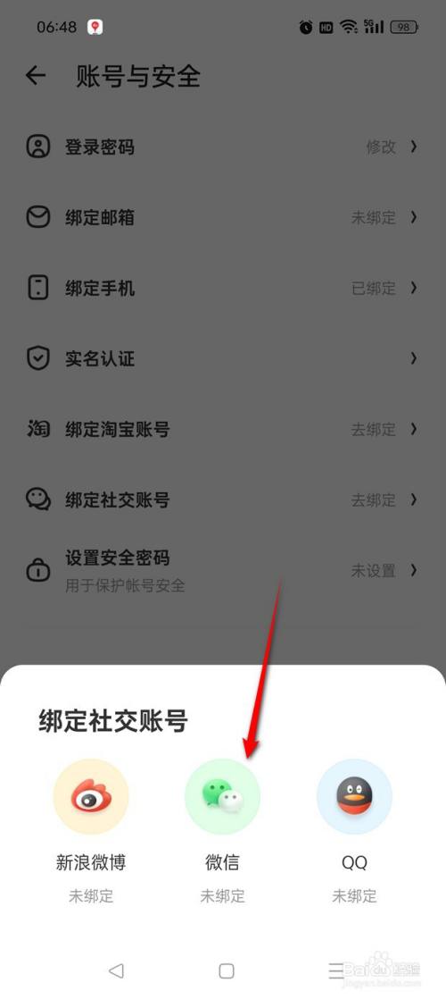 点击"未绑定微信"图标。