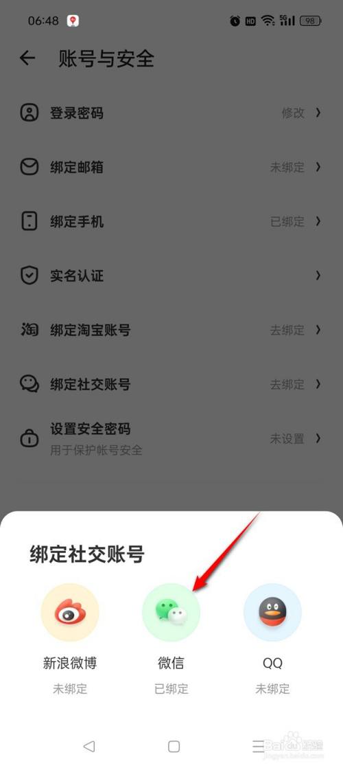 点击"去绑定"绑定社交账号。