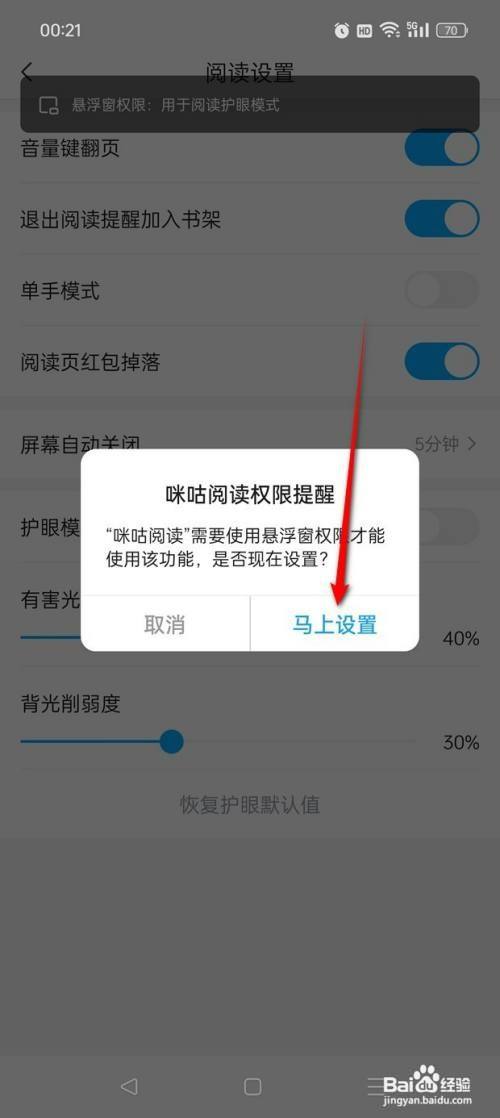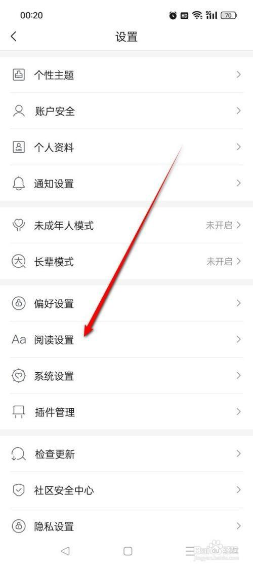 点击"阅读设置"图标进入。
