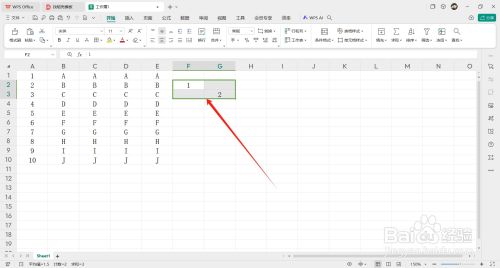 首先在第二行旁的空白单元格输入"1",在右下角单元格输入"2"。