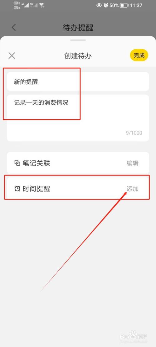 - 返回到创建待办页面,点击【完成】即可