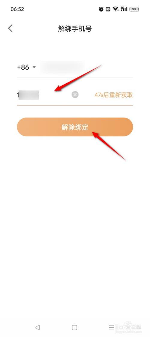 将收到的短信验证码填入,点击"解除绑科何艺定"即可解绑手机号了。