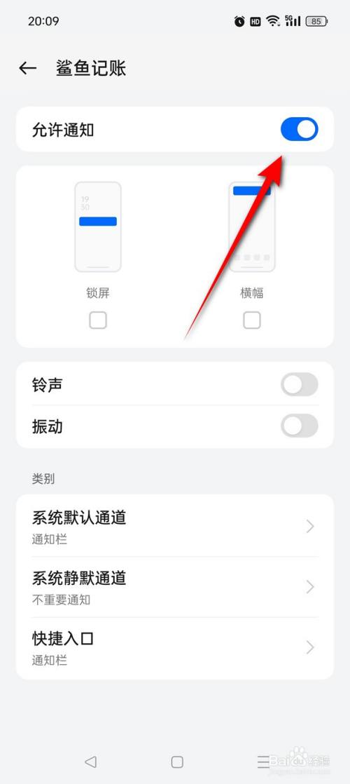 将"允许通知"旁的小滑块点亮。