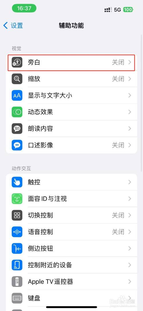 点击进入【旁白声音与触感】选项;