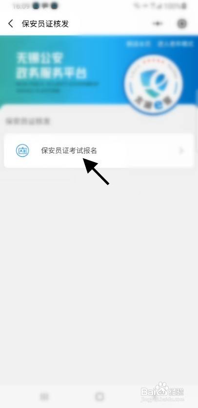 最后,点击保安员证考试报名选项即可。
