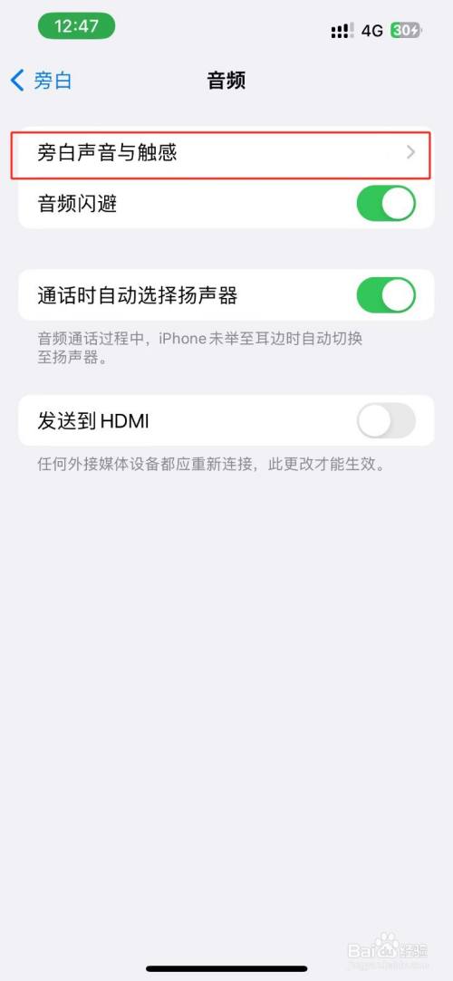 在音频页面中,点击进入【旁白声音与触感】选项;