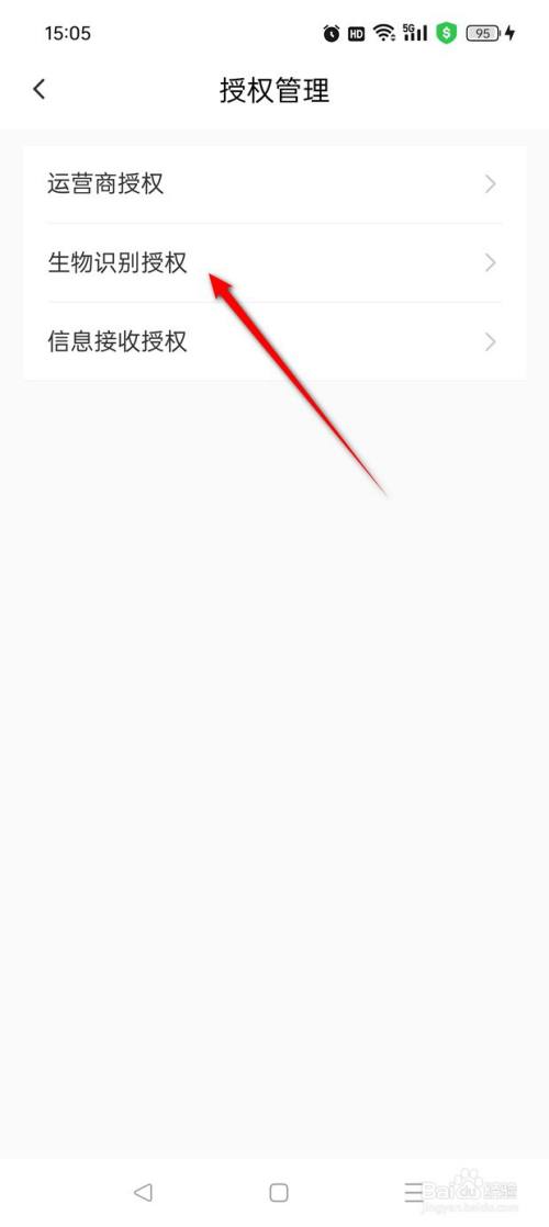 将"生物识别授权"旁的小滑块点亮即可开启,此时点击小滑块。
