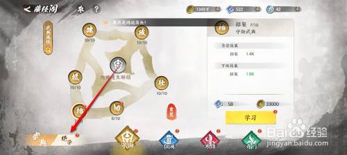 工具/原料一加Ace 2VColorOS14.0少年歌行风花雪月1.0.152方法/步骤1在少年歌行风花雪月手游,点击右下角的箭头图标。2点击进入"宗门"。3点击"藏经阁"。4点击"绝学"。5点选一个需要激活的绝学,点击"激活"。6即可成功激活绝学。END