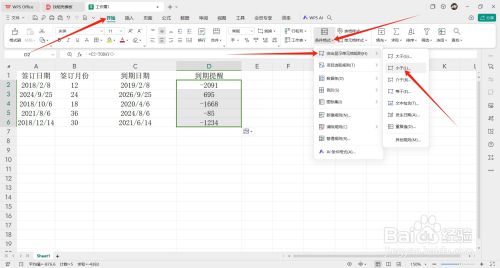 第一个参数选择【签订日期】,用分号隔开。