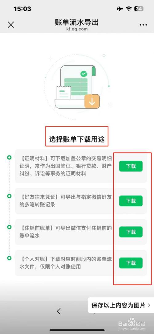 最后根据需要选择账单下载用途,点击【下载】即可