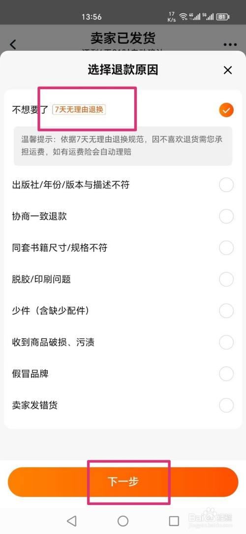 选择退货退款,点击下一步