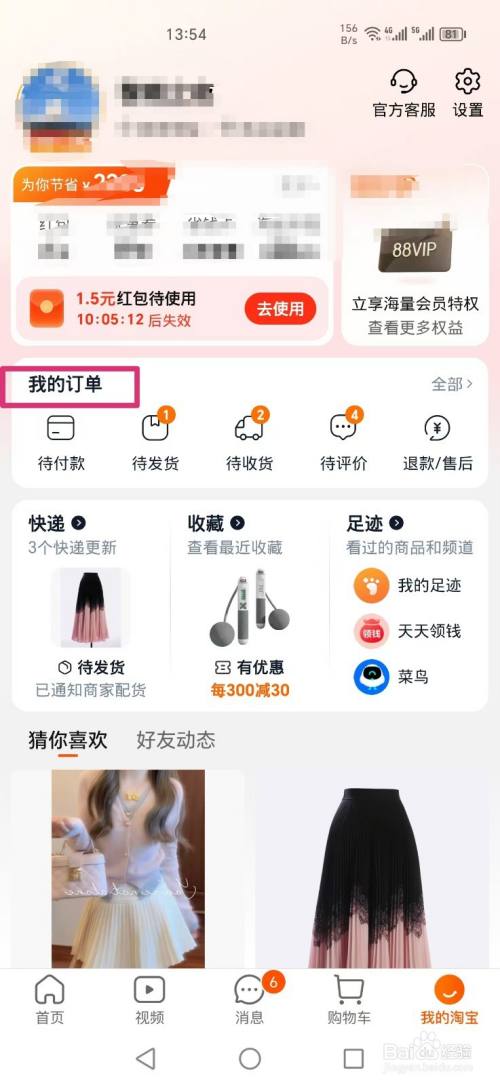 然后点击我的订单