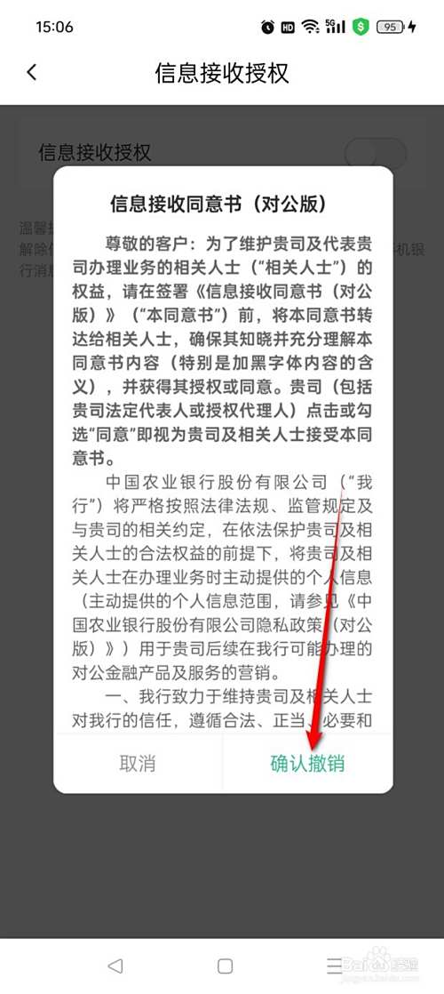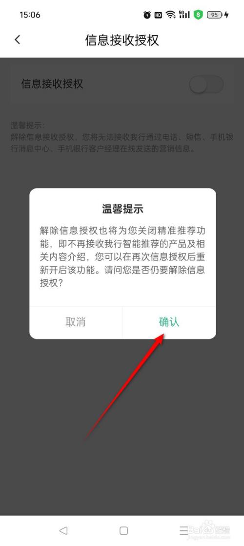 点击"信息接收授权"旁处于点亮状态的小滑块。