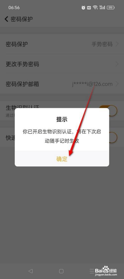 将"生物识别认证"旁的小滑块点亮即可开启。