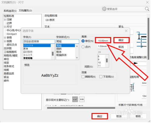 在跳出选择字体框后,修改右侧【高度】下方的单位右侧数值;