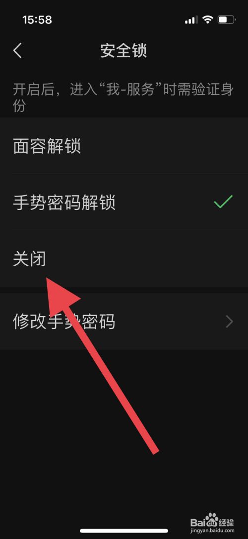 选择"关久耕闭"即可取消微信手势密码