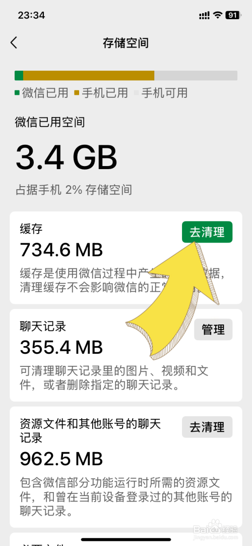 跳转进去后,点击缓存右边的去清理按钮。