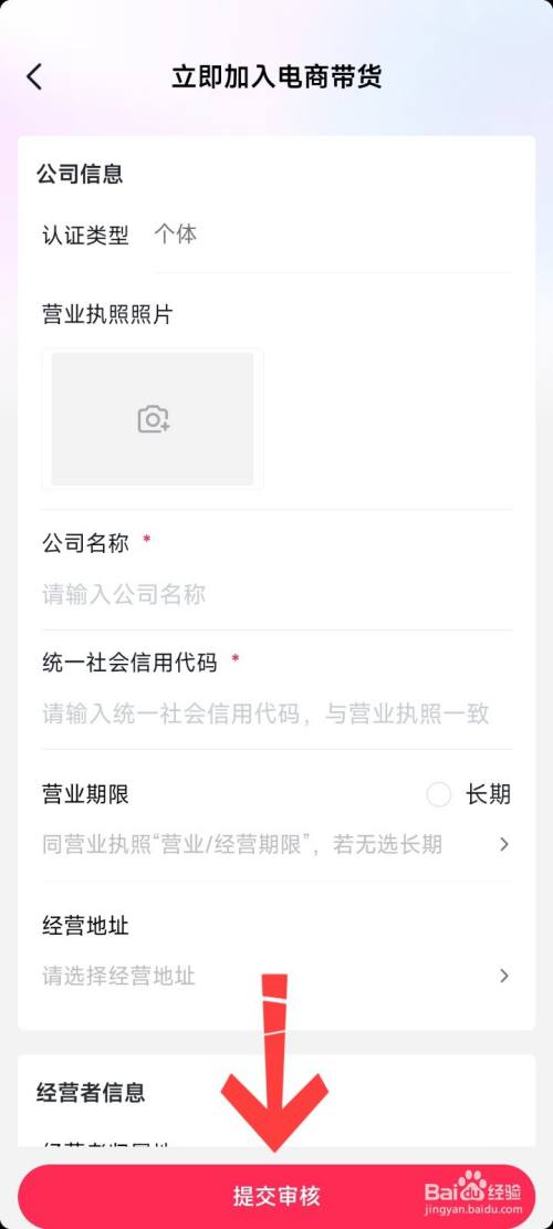 上传营业执照,填写公司名称、信用代码,单击提交审核,这样就开通成功。