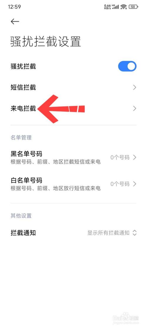 紧接着打开拦截标记号码来电。