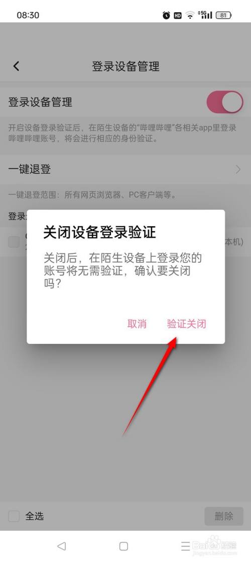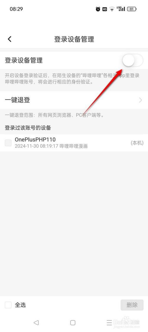 将"登录设备管理"旁的小滑块点暗即可关闭,此时点击小滑块。