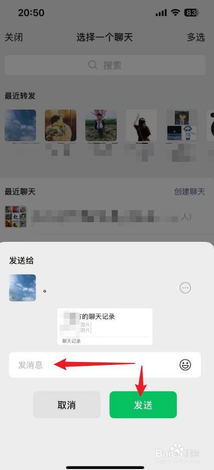 进入到选择一个聊天页面,选择要转发聊天记录的好友。