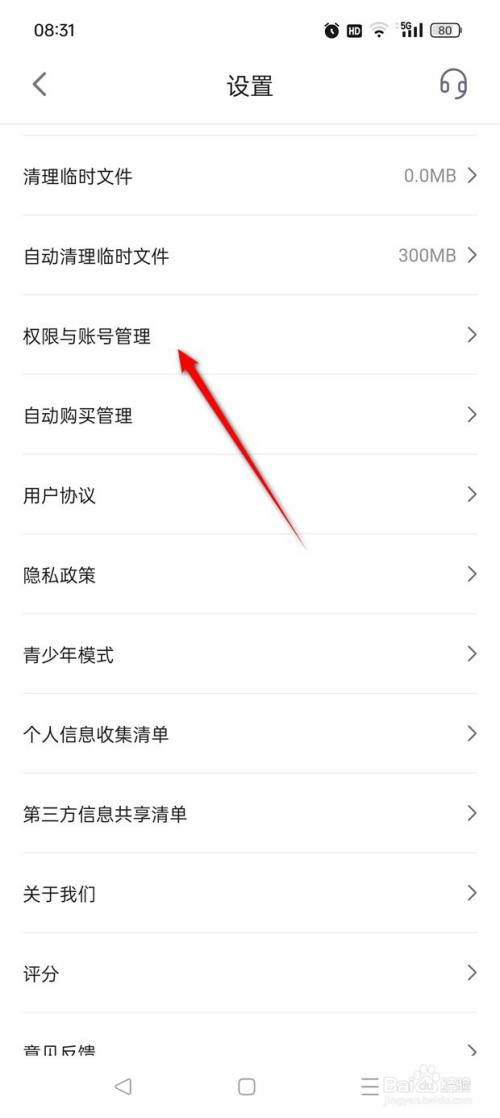 点击"权限与账号管理"。