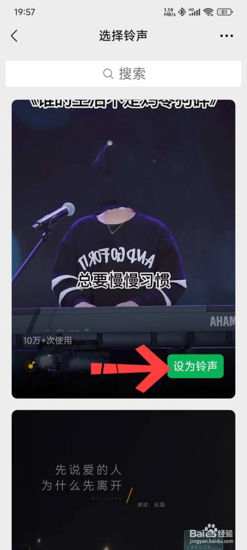 在选择铃声界面,单击设为铃声。