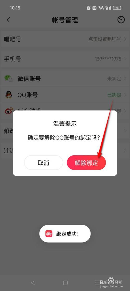 点击即可"解除绑定"QQ账号。